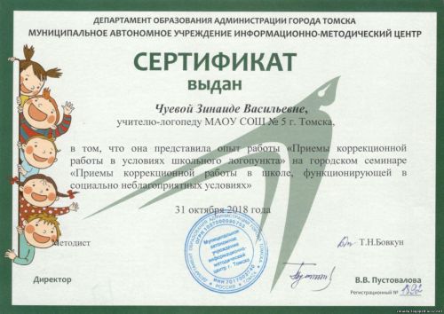 Сертификат ИМЦ 2018